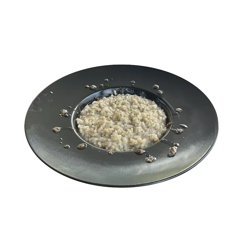tortelloni fatti a mano con cuore cremoso di ricotta, pecorino romano e pepe, saltati in padella con guanciale croccante